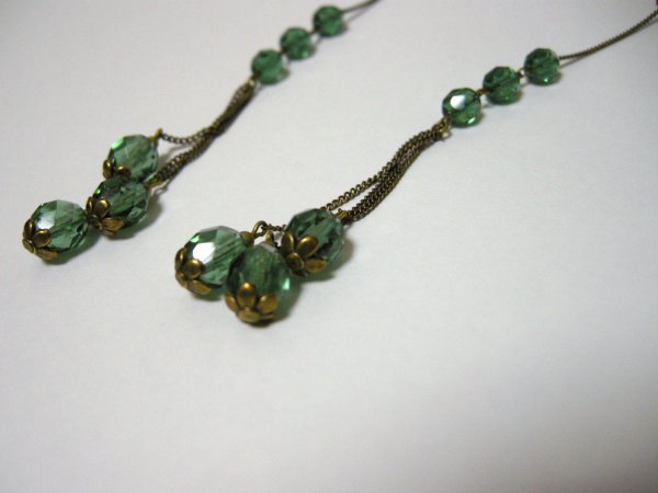 チェコガラスのドロップビーズを繋げています。