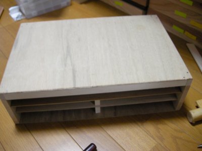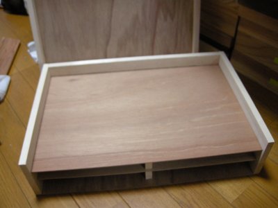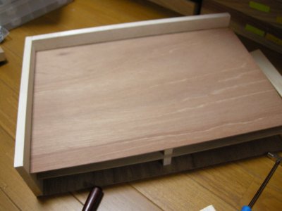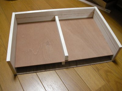 中板一枚目を嵌めるとこんな具合に。…板の向きが危ない、割れる。