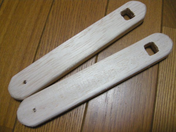 杉材で作ると、穴開けの時に勢い余って砕け散った。今度はファルカタ材かなどうかな。