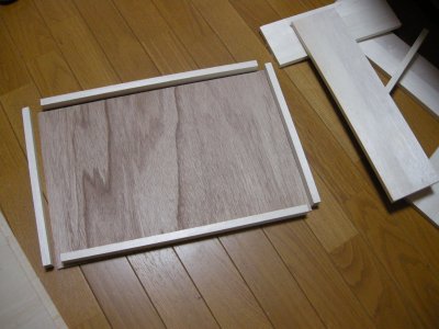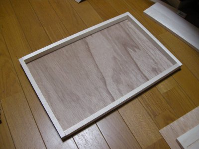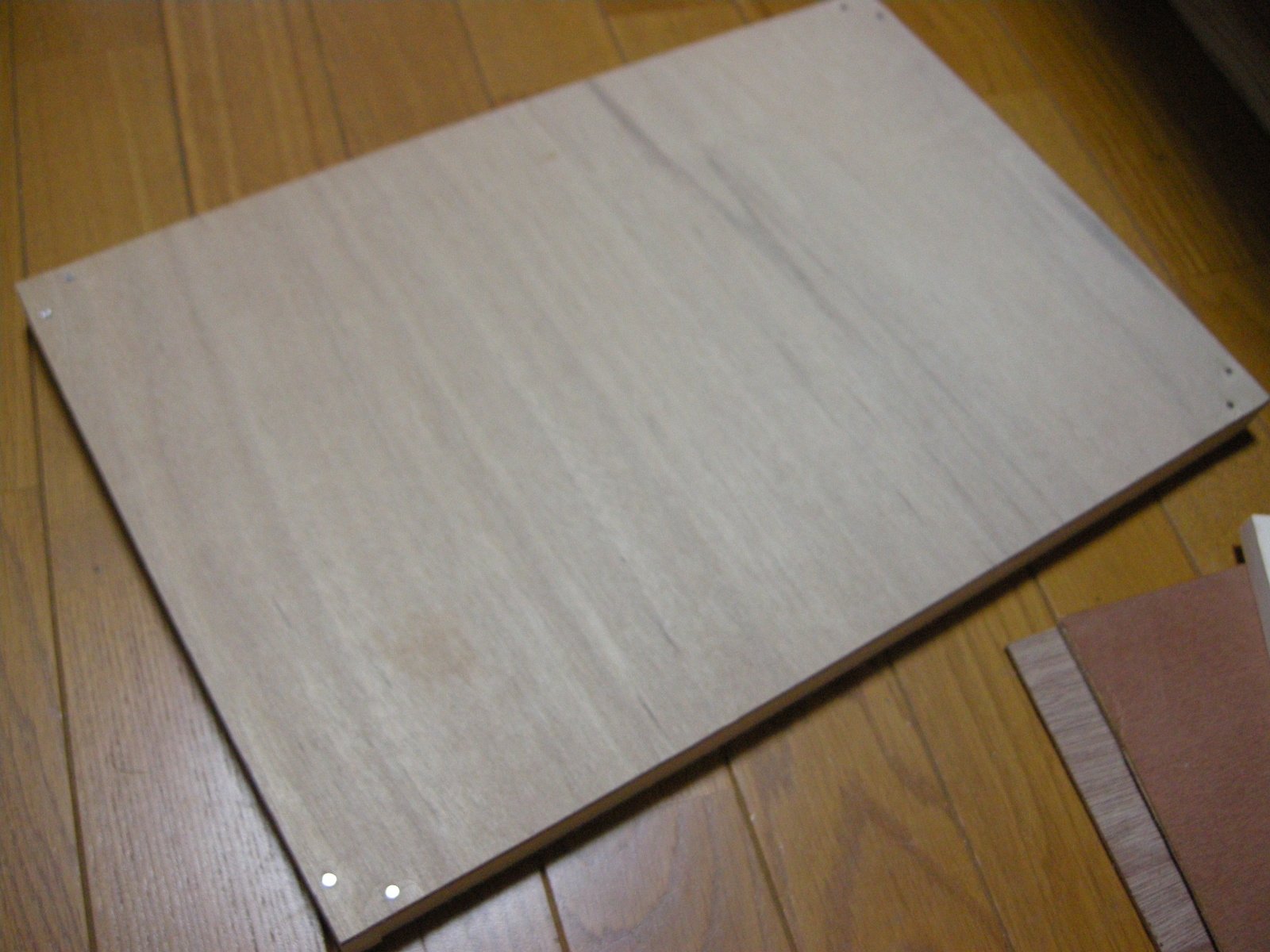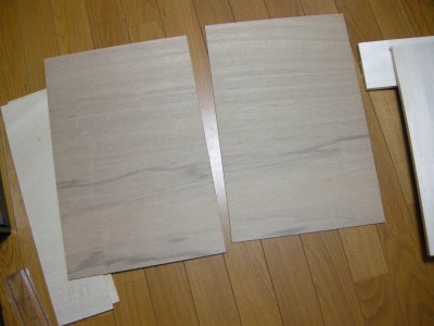 ベニヤ板300×450×2.5mmを2枚。上下(蓋と底)に貼る板。