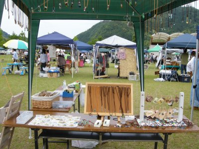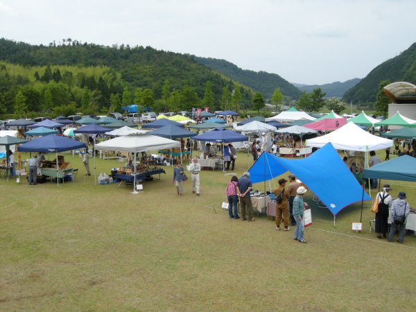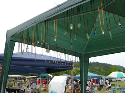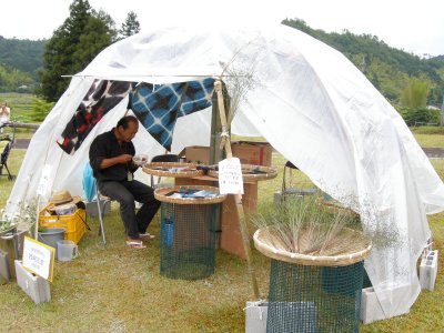 参加者テント必須のイベントですが、ここのテントは毎回竹を組んで自作しているそうです。