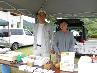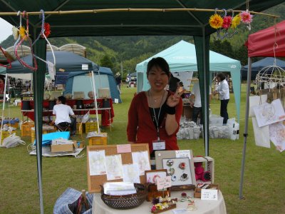 佐治町の絞り染め作家さんです。工房の名前は染空閑・遊房(あそぼう)です。お食事中すみませんでした。
